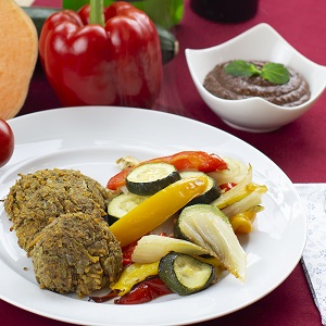 Lust auf was Gesundes? Im Ofen mit wenig Fett zubereitetes Gemüse, herzhafte Bratlinge und ein würziger Dip. Das ist unser Rezeptvorschlag von heute. Sieht optisch super aus und passt perfekt in den Herbst. Ganz nebenbei liefert das Gericht viele Vitamine und sekundäre Pflanzenstoffe. Granatapfel-Elixir enthält konzentrierte Polyphenole aus Granatapfel.